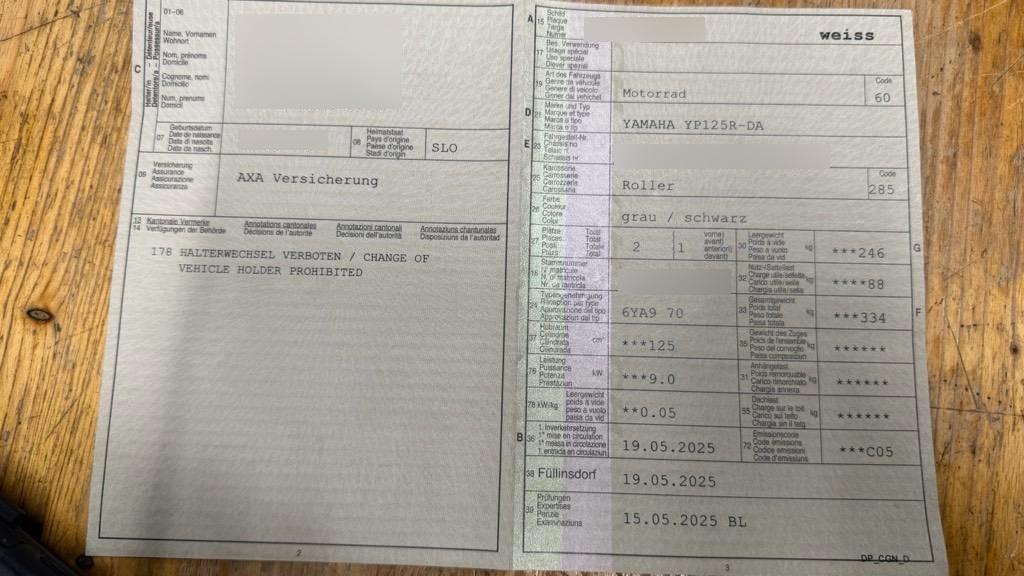 | Fahrzeugausweis | Vorhanden |