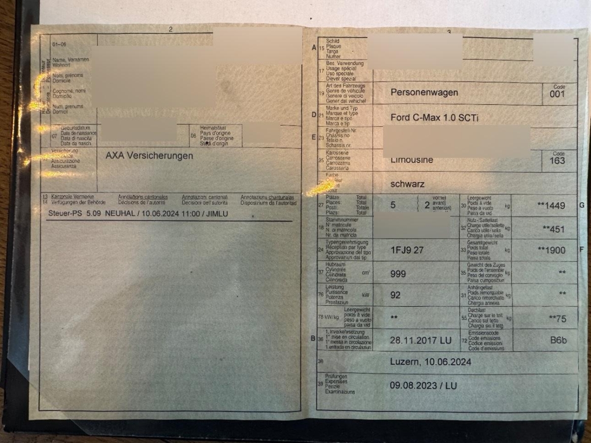 | Fahrzeugausweis | Vorhanden |