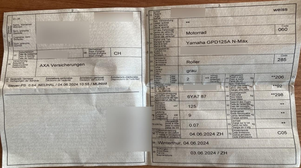 | Fahrzeugausweis | Vorhanden |
