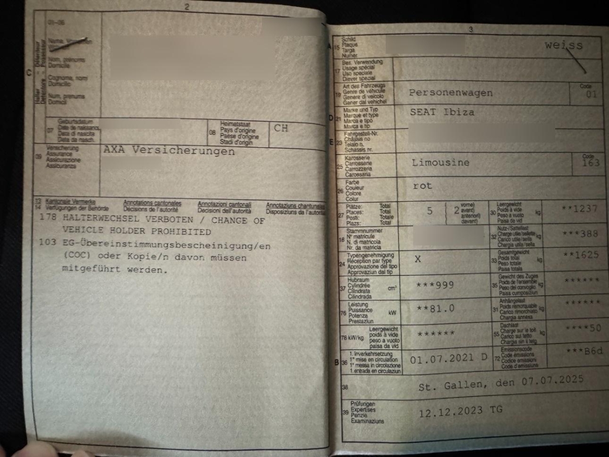 | Fahrzeugausweis | Vorhanden |