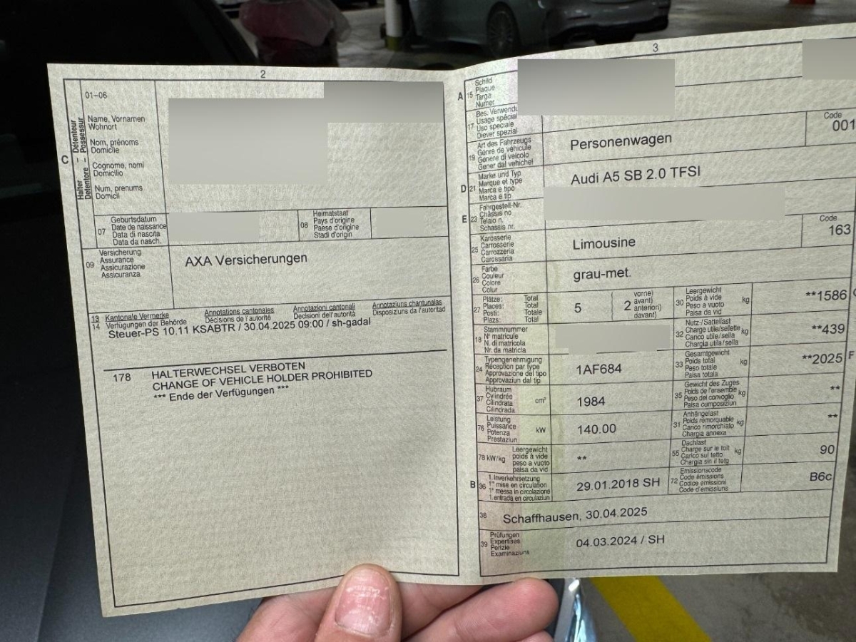 | Fahrzeugausweis | Vorhanden |