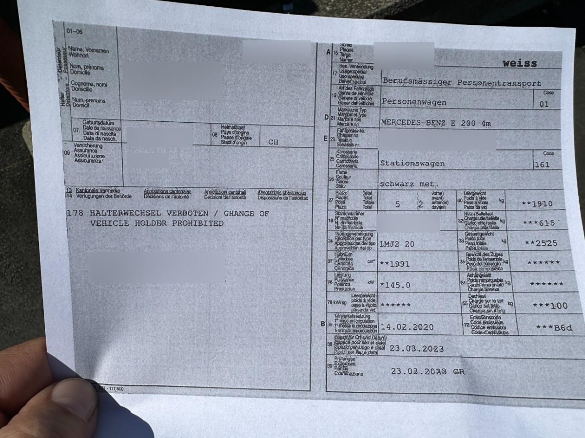 | Fahrzeugausweis | Vorhanden |