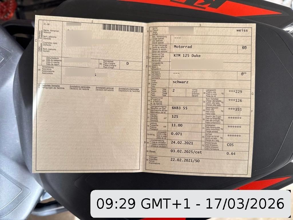 | Fahrzeugausweis | Vorhanden |