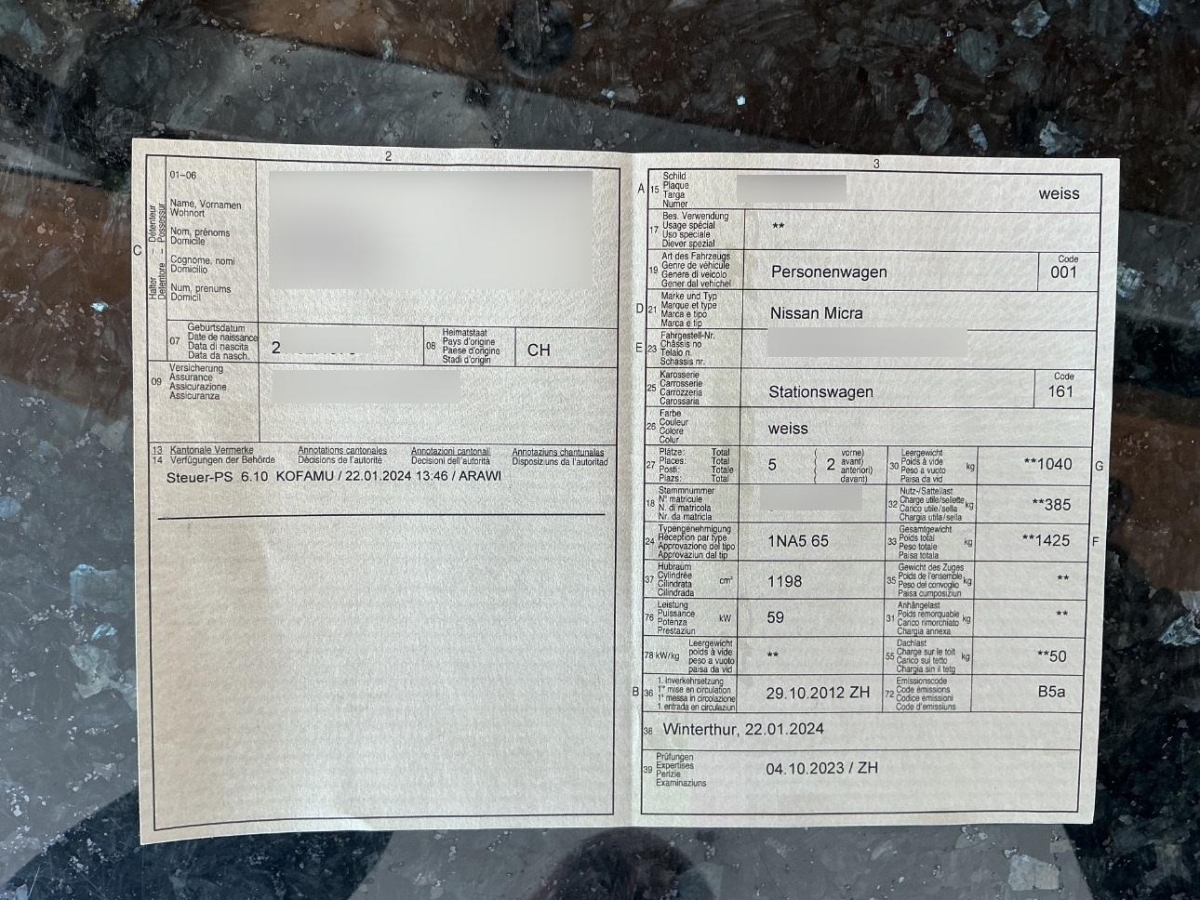 | Fahrzeugausweis | Vorhanden |