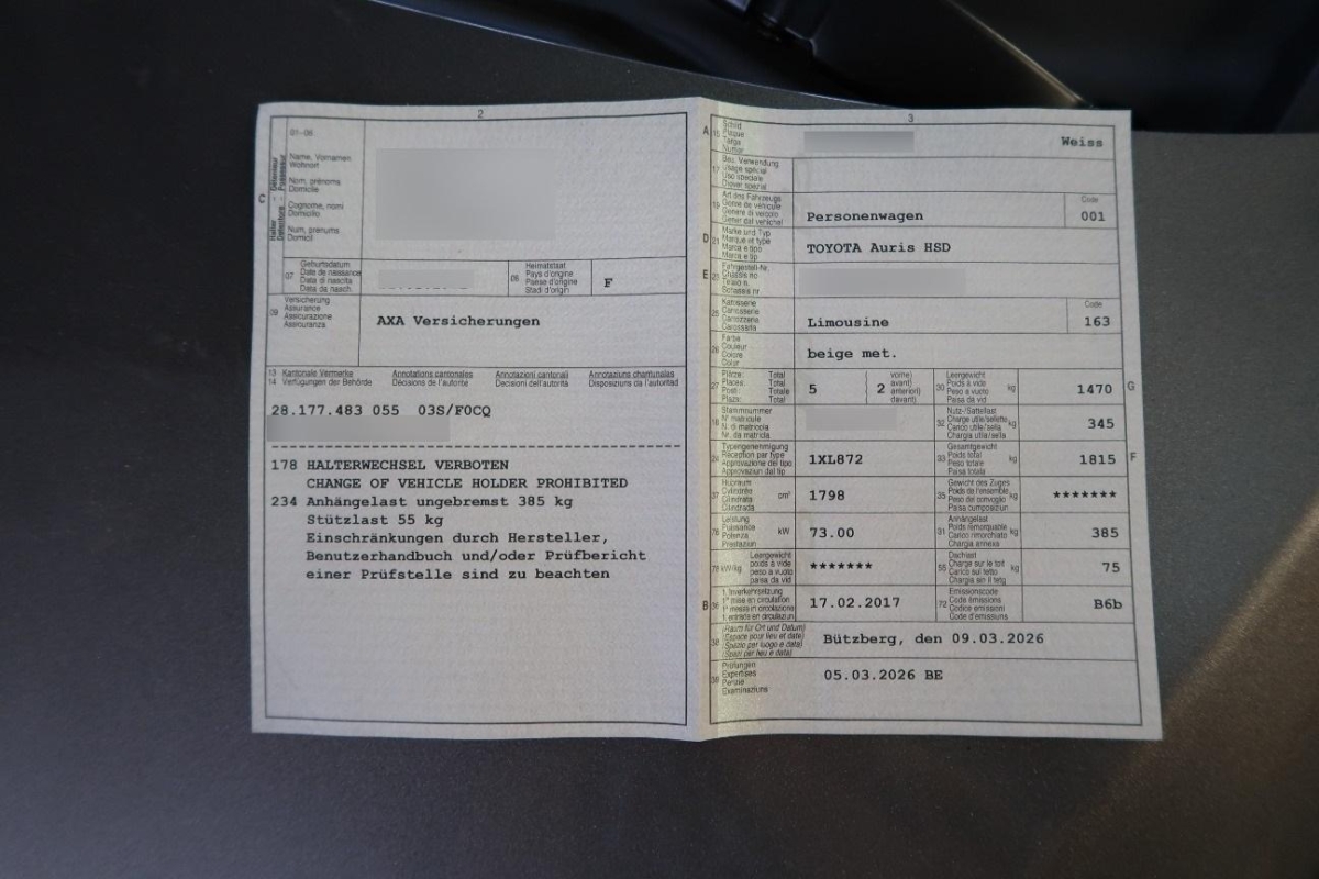 | Fahrzeugausweis | Vorhanden |