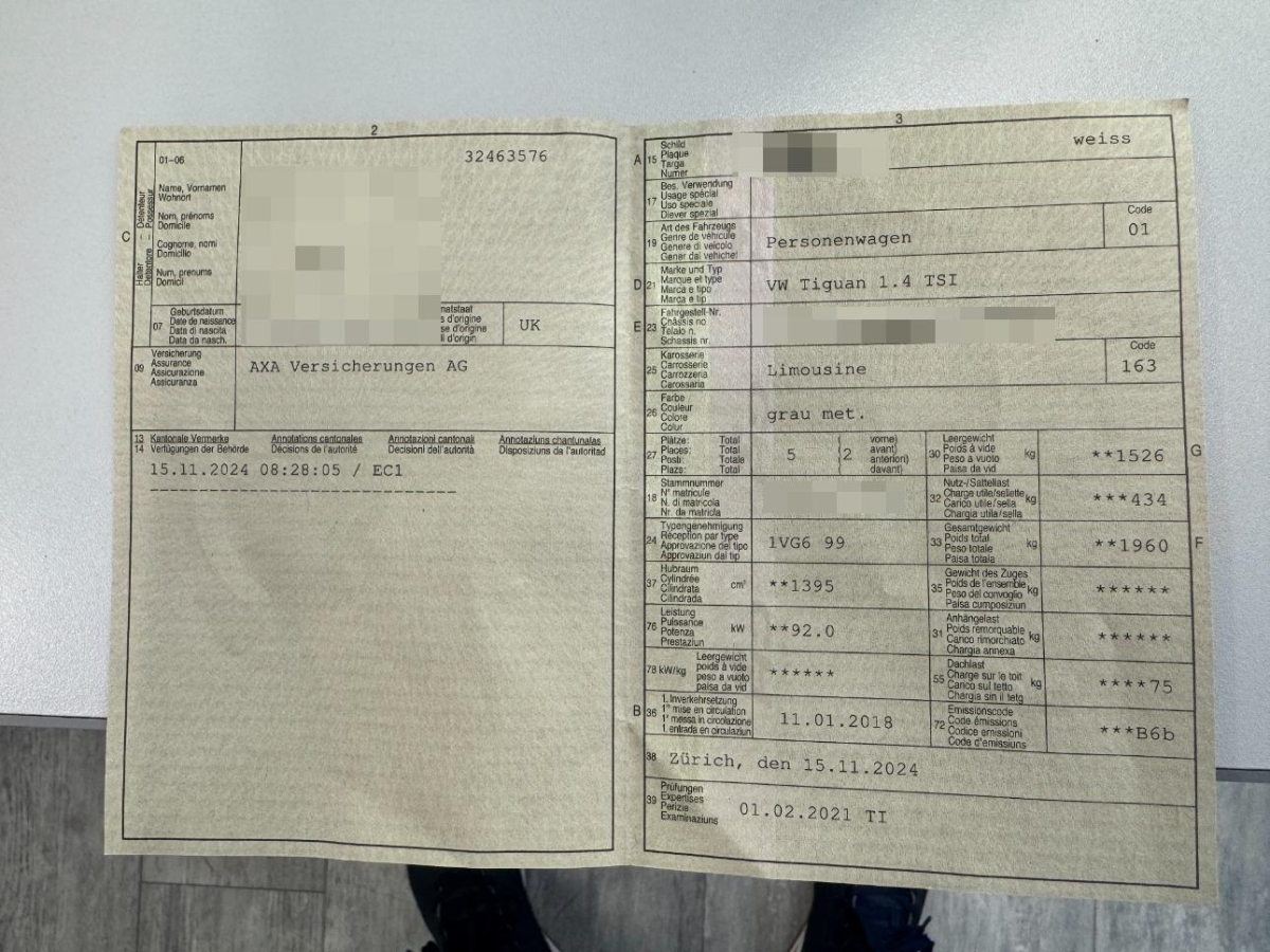 | Fahrzeugausweis | Vorhanden |