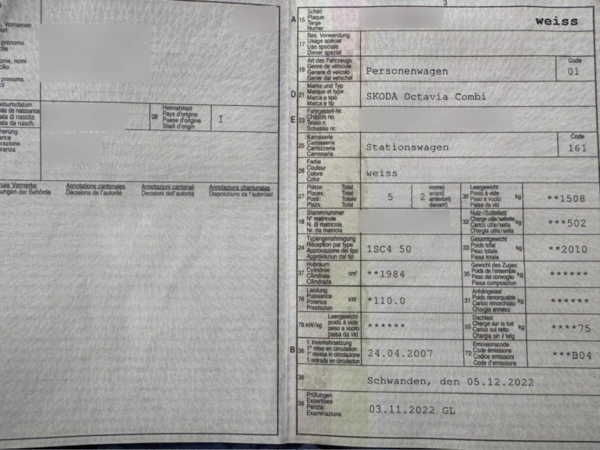 | Fahrzeugausweis | Vorhanden |