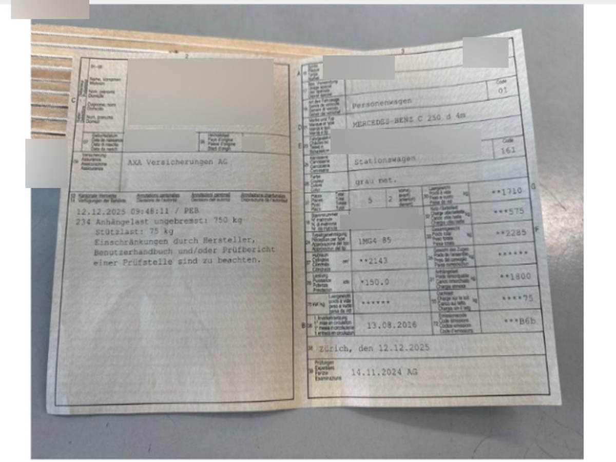 | Fahrzeugausweis | Vorhanden |