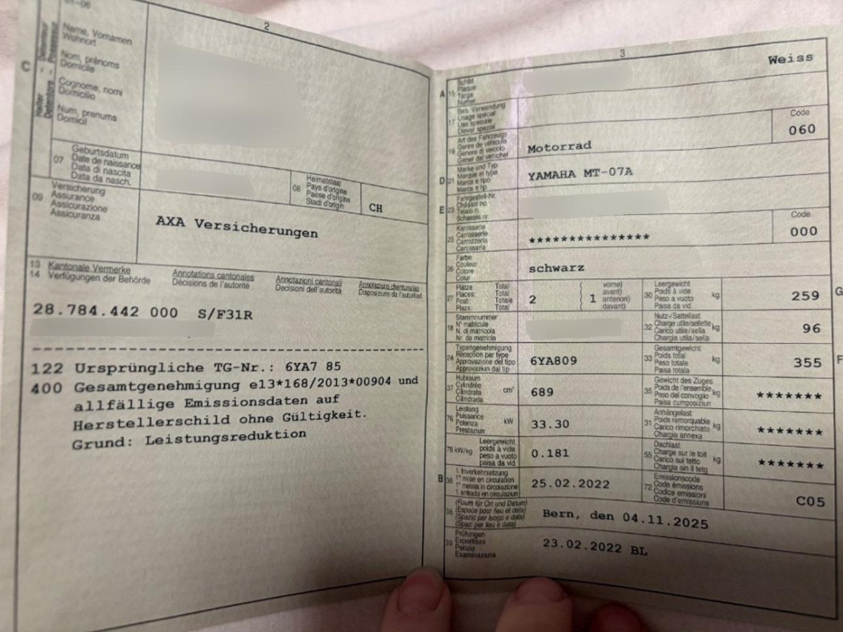 | Fahrzeugausweis | Vorhanden |