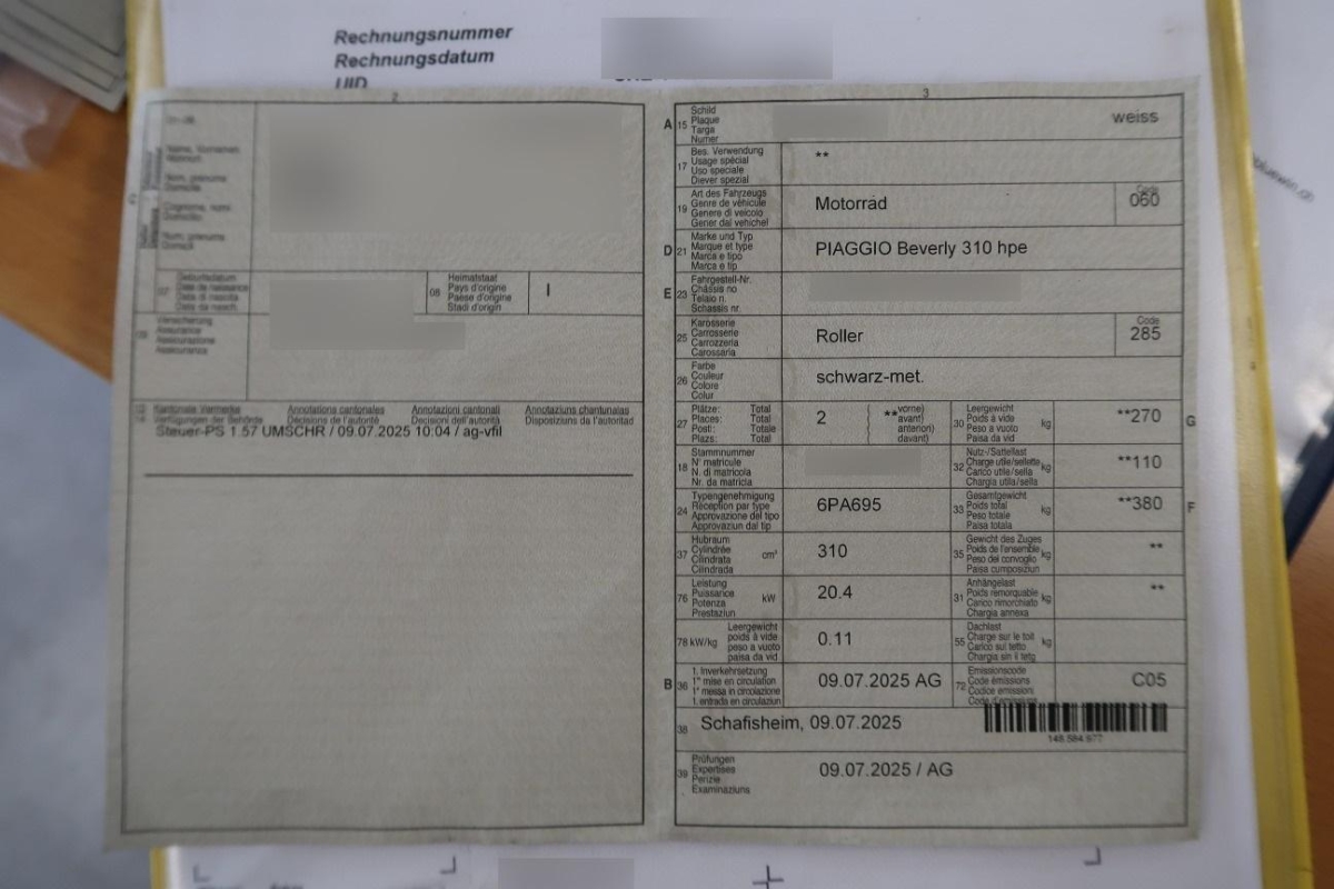 | Fahrzeugausweis | Vorhanden |