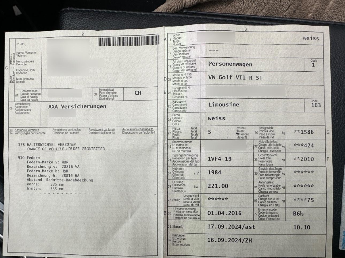| Fahrzeugausweis | Vorhanden |