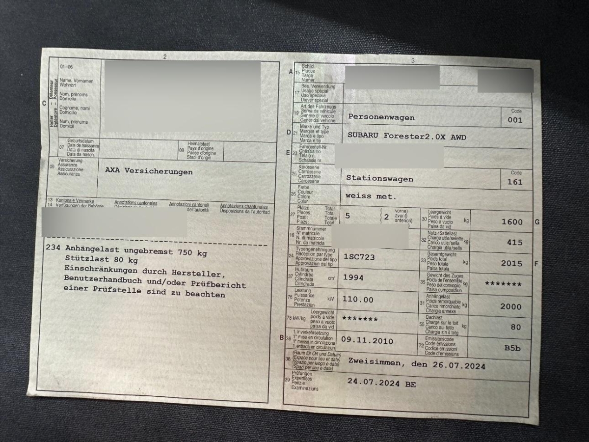 | Fahrzeugausweis | Vorhanden |