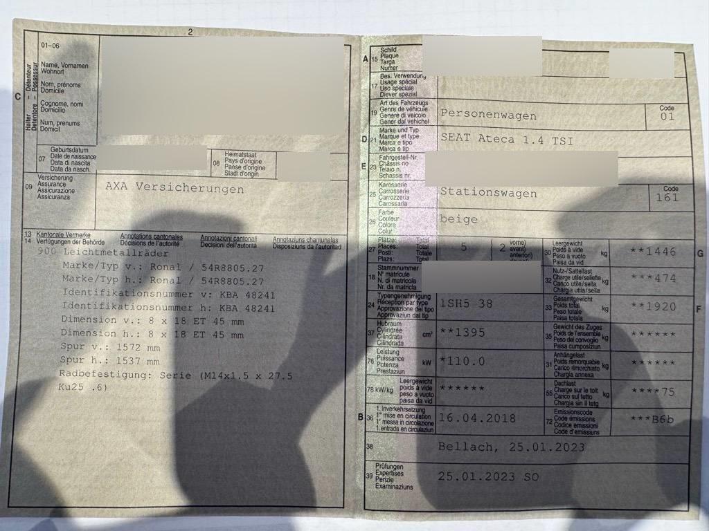 | Fahrzeugausweis | Vorhanden |