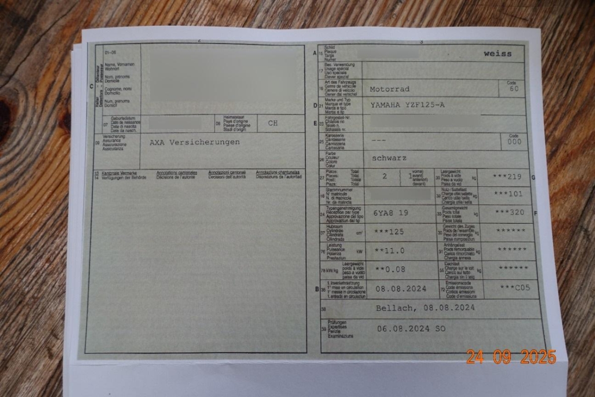 | Fahrzeugausweis | Vorhanden |