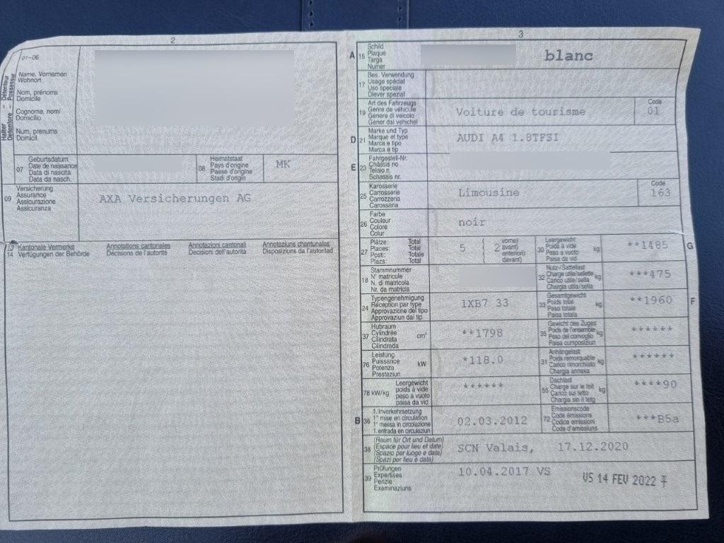 | Fahrzeugausweis | Vorhanden |