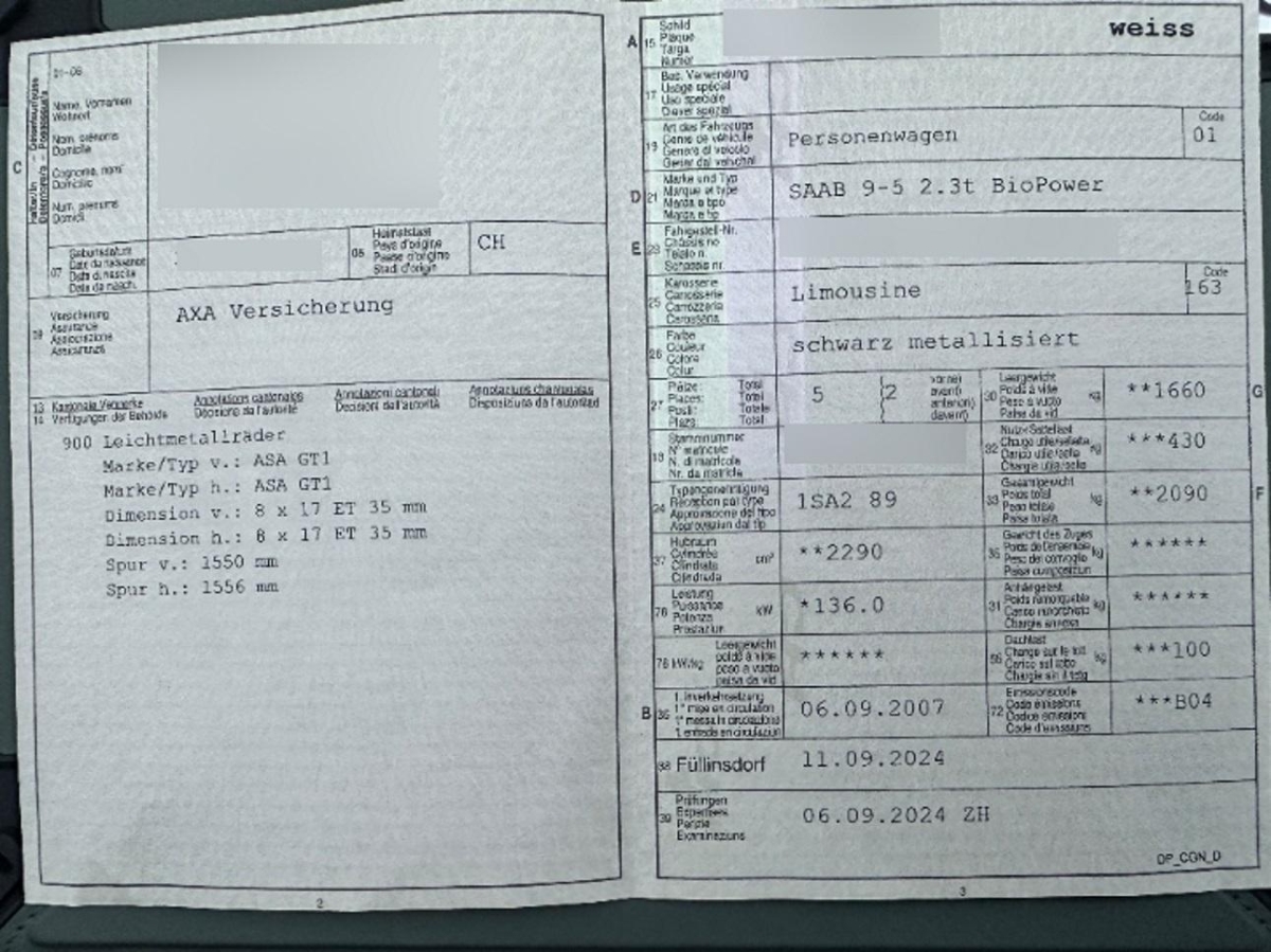 Aktivkohlefilter (Geruchsfilter), Lenkrad längs- und höhenverstellbar, Antiblockiersystem (ABS), Drittes Bremslicht, Vordersitze manuell verstellbar, Nebelschlussleuchte, Rücksitzlehne geteilt abklappbar, Tageskilometerzähler, Handschuhfach gekühlt, Beide Make up-Spiegel beleuchtet, Schalthebelknauf in Leder, Klimatisierungsautomatik, Airbag Fahrer und Beifahrer, Mobiltelefon-Vorbereitung, Seitenschwellerverkleidung in Wagen- farbe lackiert, Servolenkung, Elektronisches Stabilitäts-Programm (ESP), Heckscheibenheizung, Teppichfussmatten vorne und hinten, Lenkrad-Wippschaltung (Paddles) nur mit automatischem Getriebe, Vorbereitung Navigationssystem, ISOFIX Kindersitzvorrichtung, Türgriffe aussen in Wagenfarbe, Gurtstraffer vorne und hinten, Beleuchtetes und abschliessbares Handschuhfach, Tempomat, Leuchtweitenregulierung automatisch, Seitenaufprall-Schutzsystem, Wegfahrsperre elektronisch, Audiosystem ES1-SSI-Radio/CD 70W, Ablagefach in Armlehne hinten, Leder-Ausstattung, Aussenspiegel rechts und links beheizt und elektrisch verstellbar, asphärisch gewölbtes Spiegelglas, Bordcomputer, Katalysator geregelt, Sport-Lederlenkrad, Nebelscheinwerfer, Aktive Kopfstützen, Elektronische Traktionskontrolle (ASR/TCS), 3-Punkt-Sicherheitsgurte auf allen Plätzen, Getönte Scheiben, Aussentemperaturanzeige, Bi-Xenon Lichtanlage, 5-Gang-Getriebe, Innenlicht-Abschaltverzögerung, Kopfstützen hinten, Reserverad, Seitenairbag für Fahrer und Beifahrer, Scheinwerfer-Waschanlage, Elektrische Fensterheber vorne + hinten, Night-Panel, Abblendlichtausschaltverzögerung 'Follow me home', Drehzahlmesser, Scheibenwischer vorne mit Intervall, Multifunktionslenkrad, Durchladeöffnung im Kofferraum, Uni-Lackierung, Zentralverriegelung mit Fernbedienung, Radiovorbereitung, Scheibenantenne, Ent- störung und 4 LS, Schutzleisten in Wagenfarbe, Mittelarmlehne vorne, Aluminium-Applikationen, Cupholder vorne und hinten, Leichtmetallräder im 5-Speichen-Twin- Design 17J
