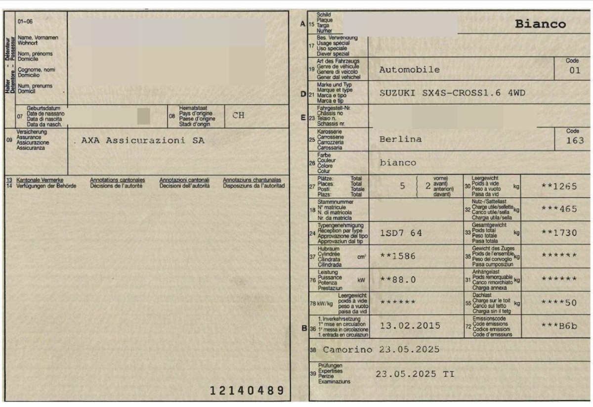 | Fahrzeugausweis | Fehlt |