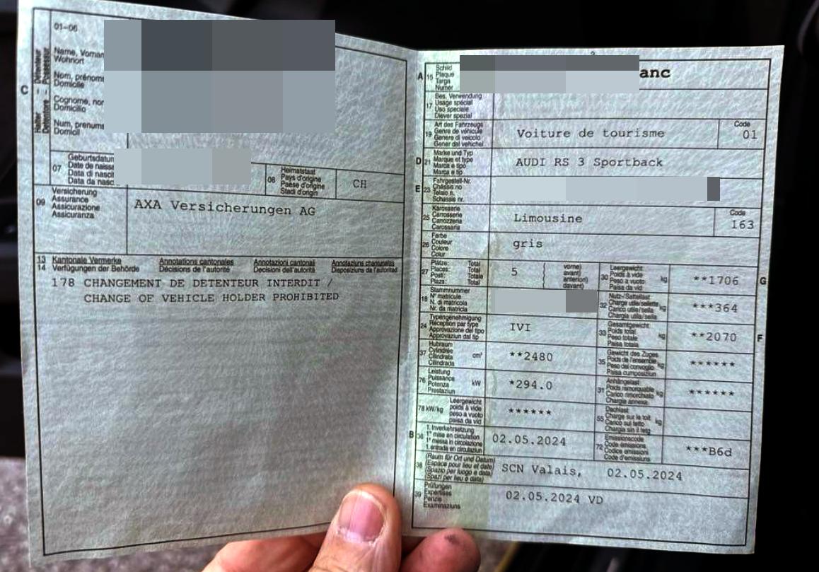 | Fahrzeugausweis | Vorhanden |