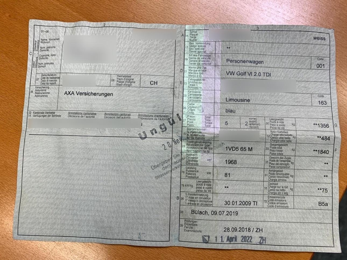 | Fahrzeugausweis | Vorhanden |