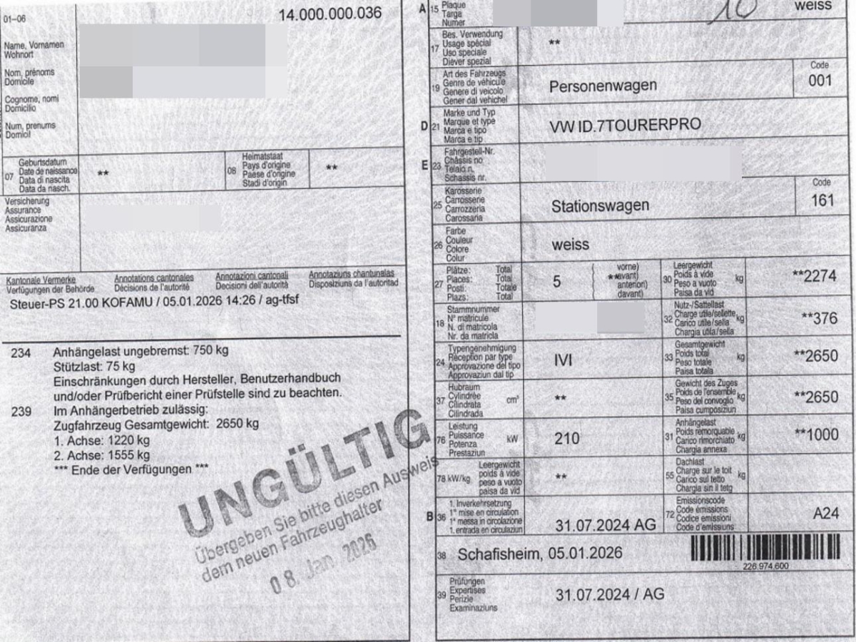 | Fahrzeugausweis | Vorhanden |