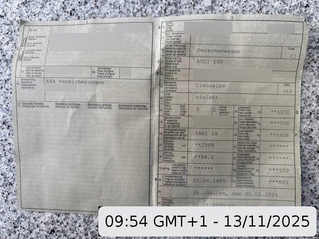| Fahrzeugausweis | Vorhanden |