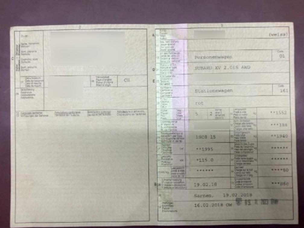 | Fahrzeugausweis | Vorhanden |