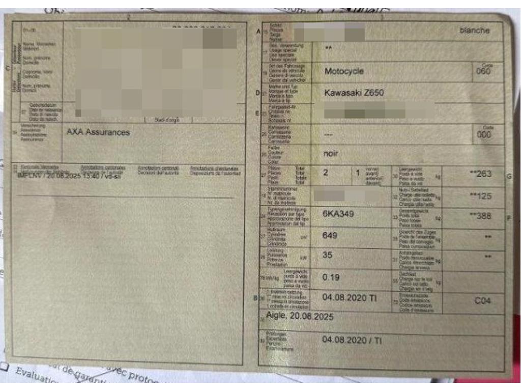 | Fahrzeugausweis | Vorhanden |