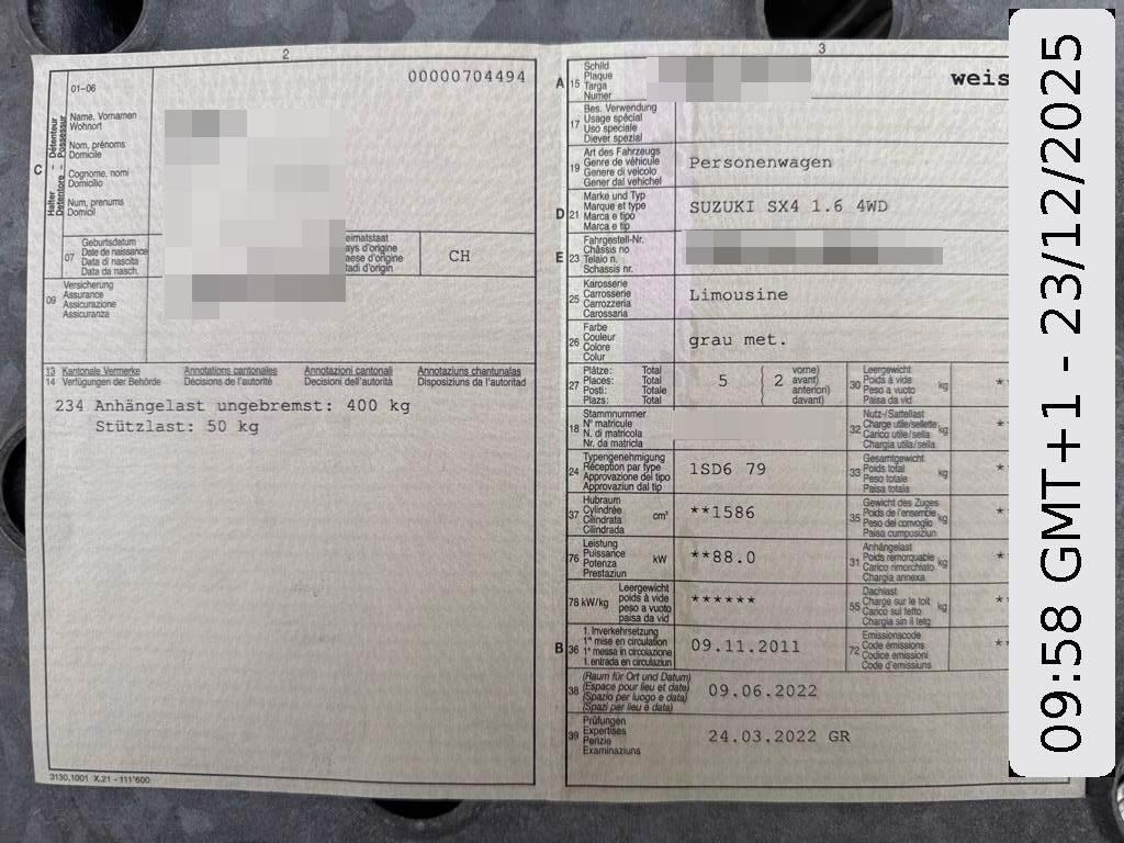 | Fahrzeugausweis | Vorhanden |