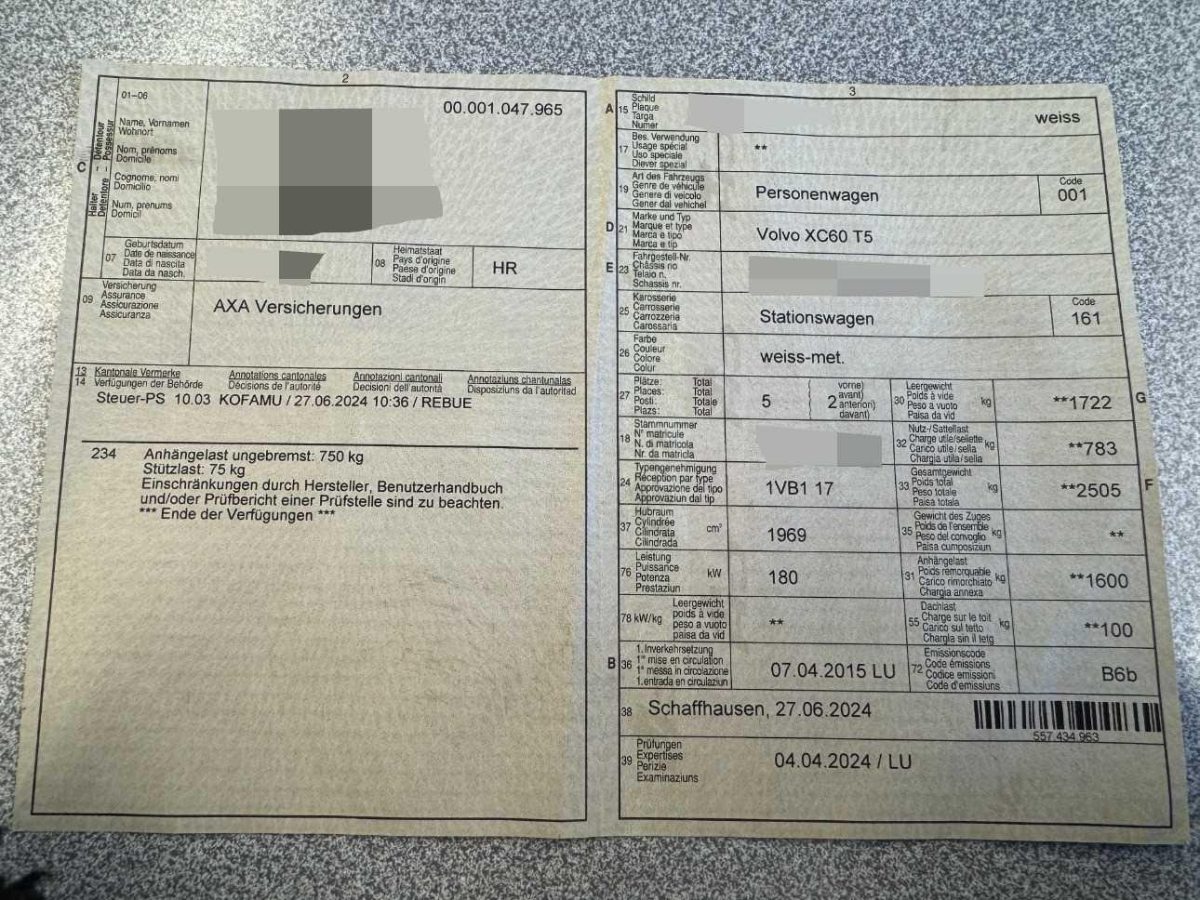 | Fahrzeugausweis | Vorhanden |