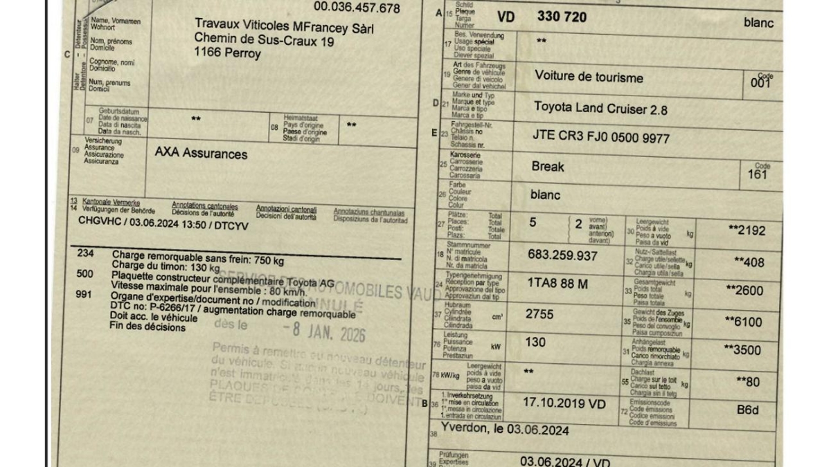 | Fahrzeugausweis | Vorhanden |