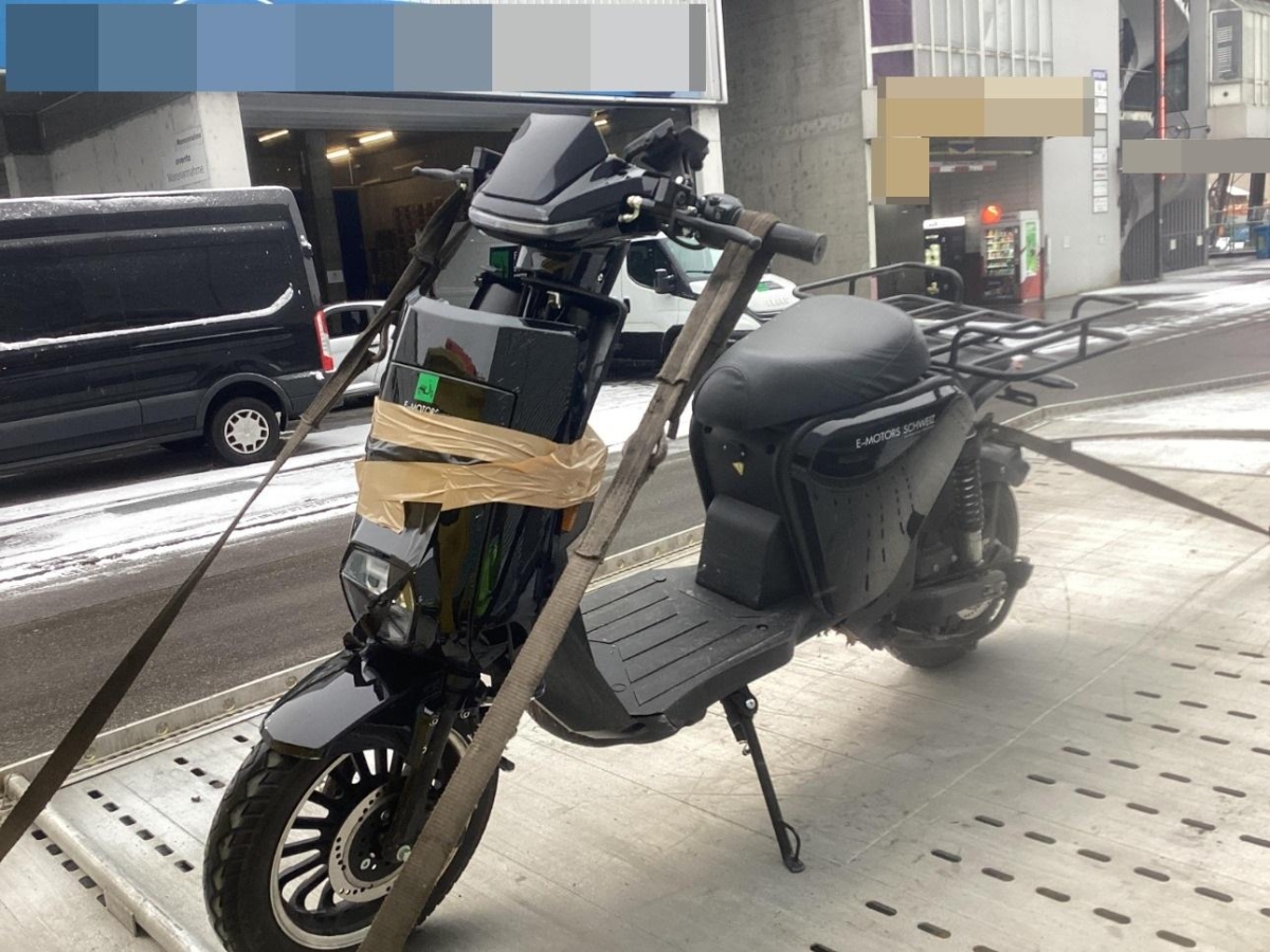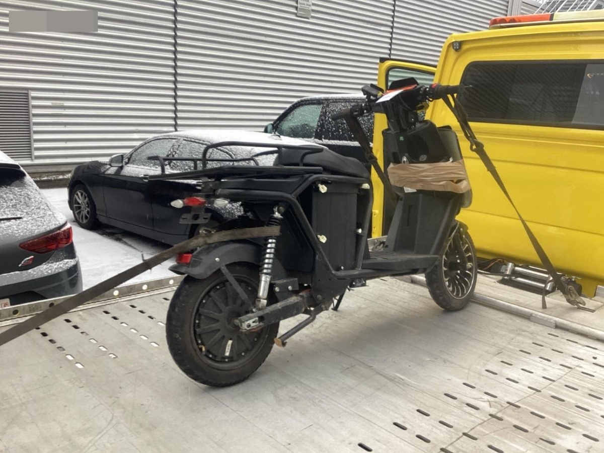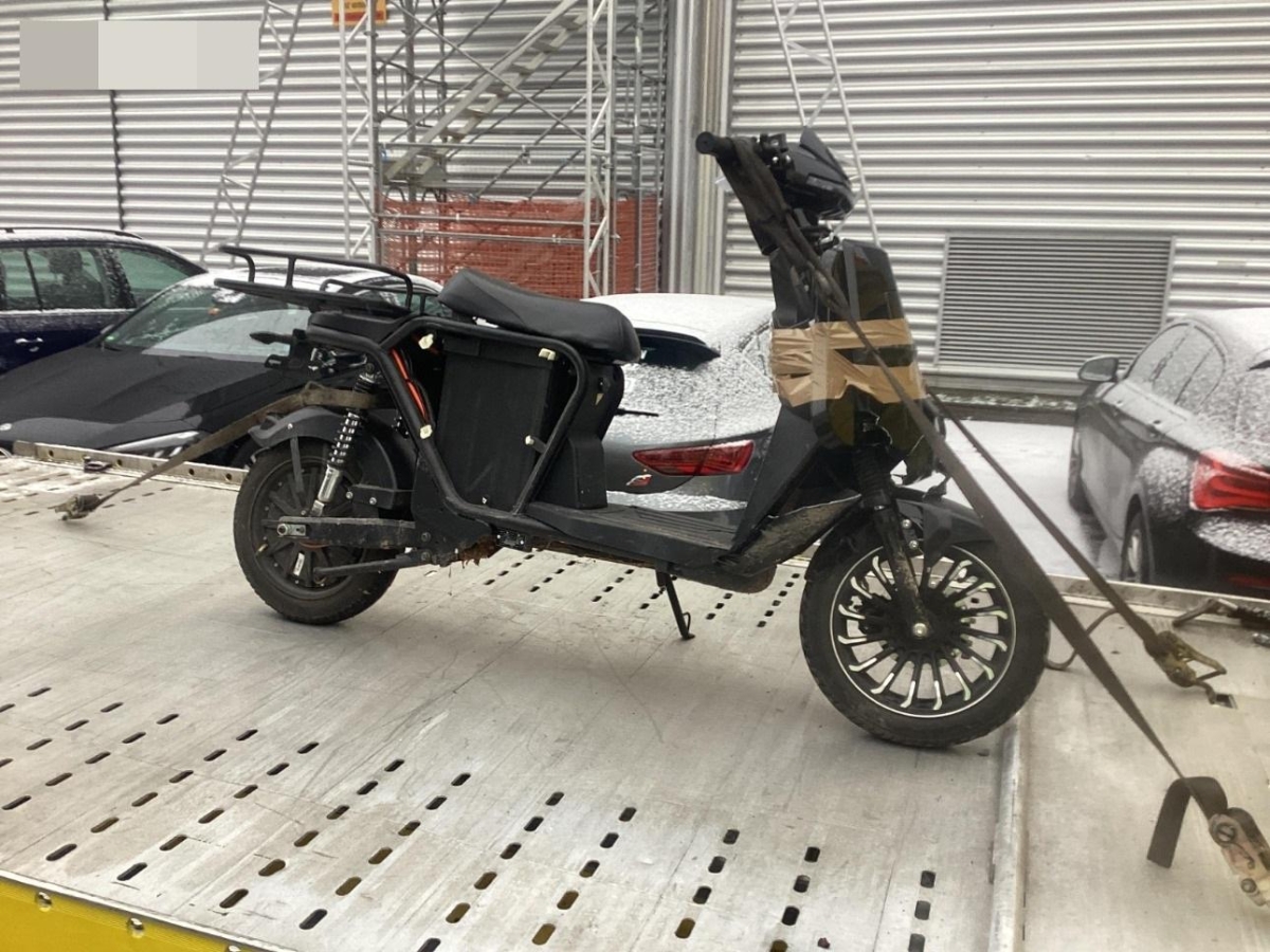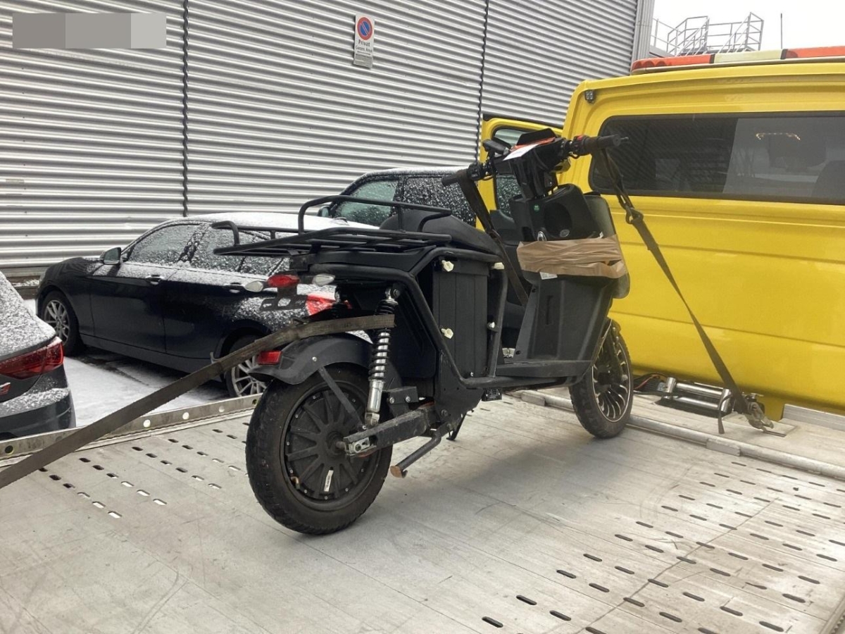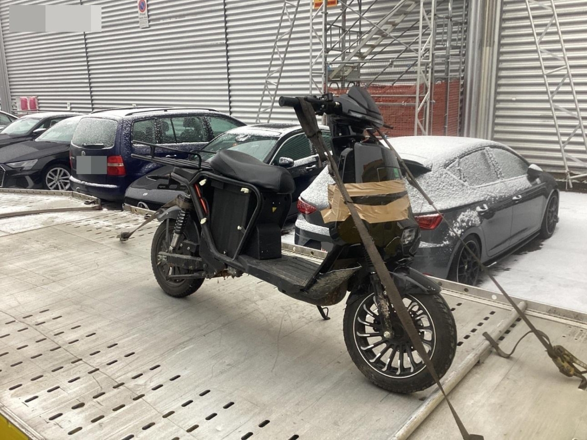 Der Elektroroller wird daher ohne Batterie versteigert.