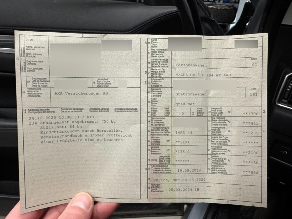| Fahrzeugausweis | Vorhanden |