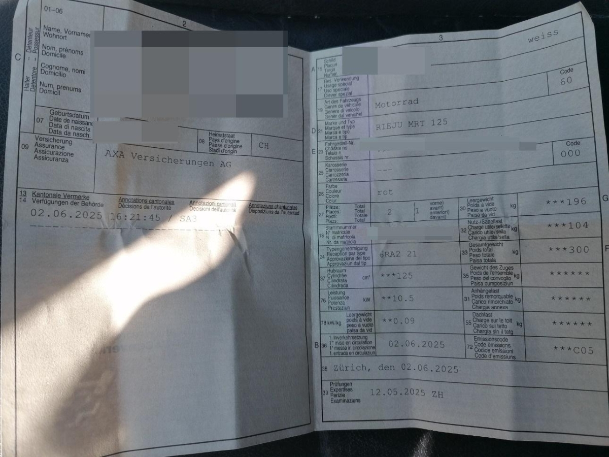 | Fahrzeugausweis | Vorhanden |