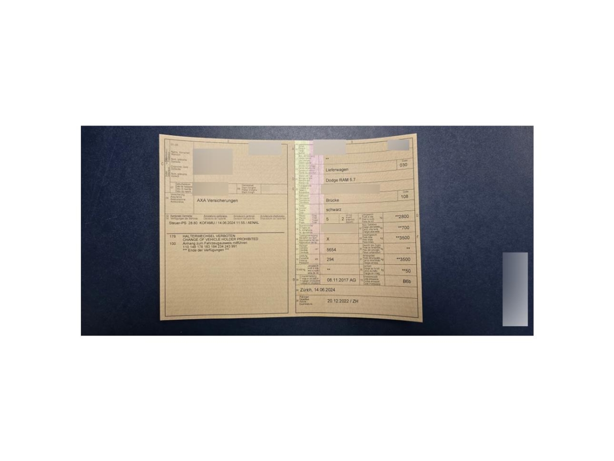 | Fahrzeugausweis | Vorhanden |