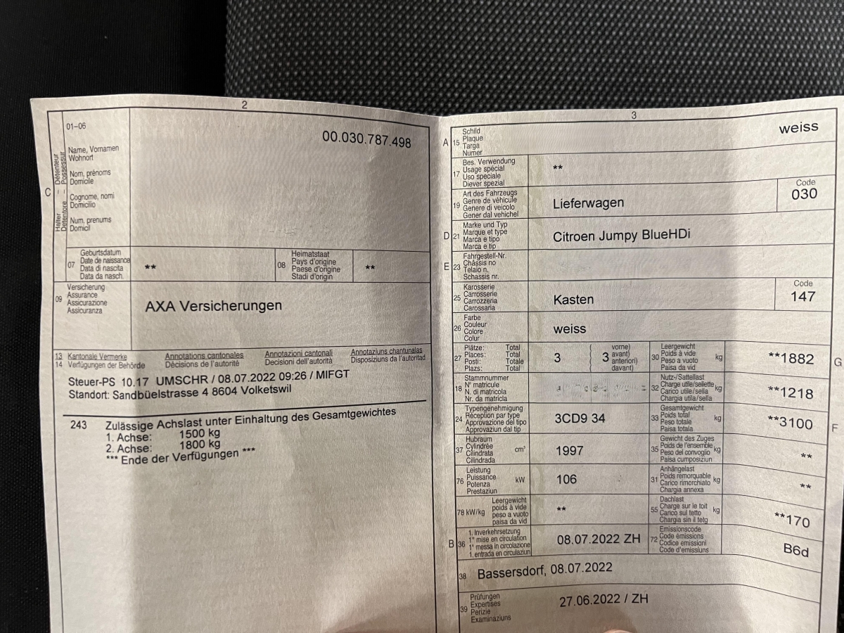 | Fahrzeugausweis | Vorhanden |
