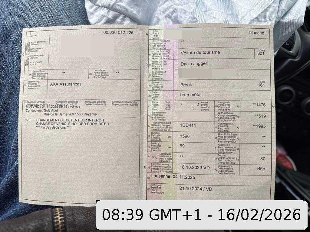 | Fahrzeugausweis | Vorhanden |