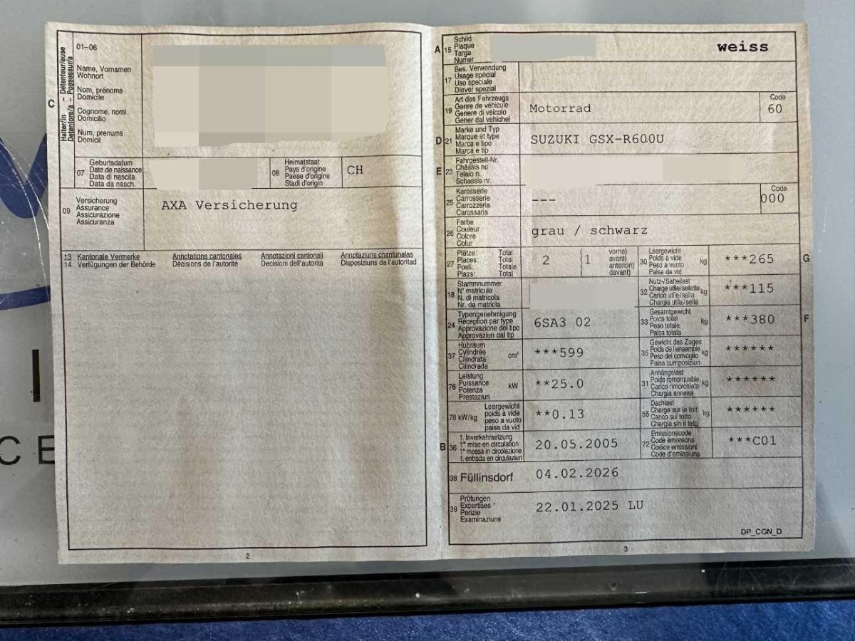| Fahrzeugausweis | Vorhanden |