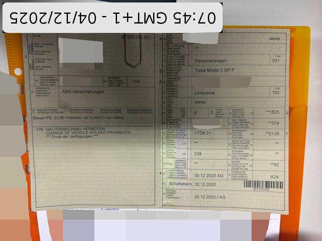 | Fahrzeugausweis | Vorhanden |