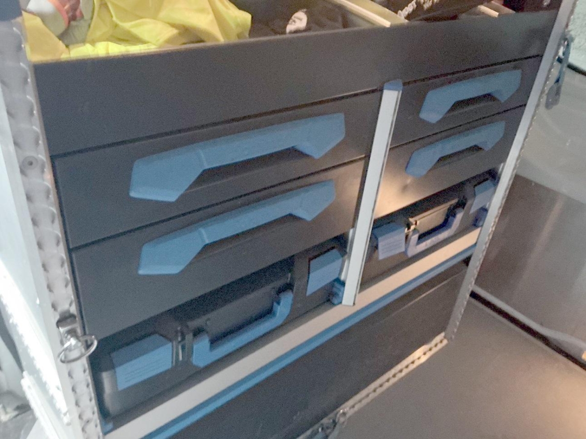 Das Fahrzeug wird inkl. Sortimo Einrichtung, jedoch ohne Werkzeug verkauft