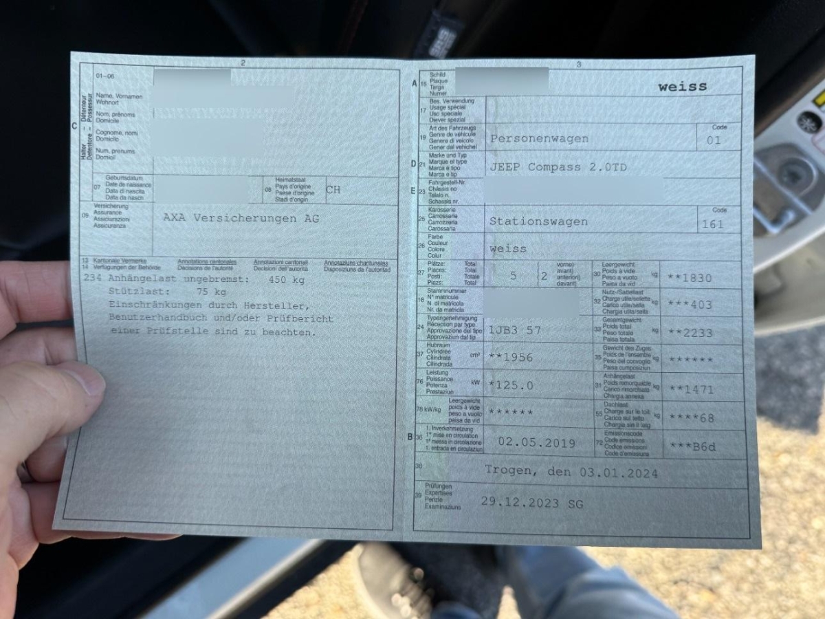 | Fahrzeugausweis | Vorhanden |