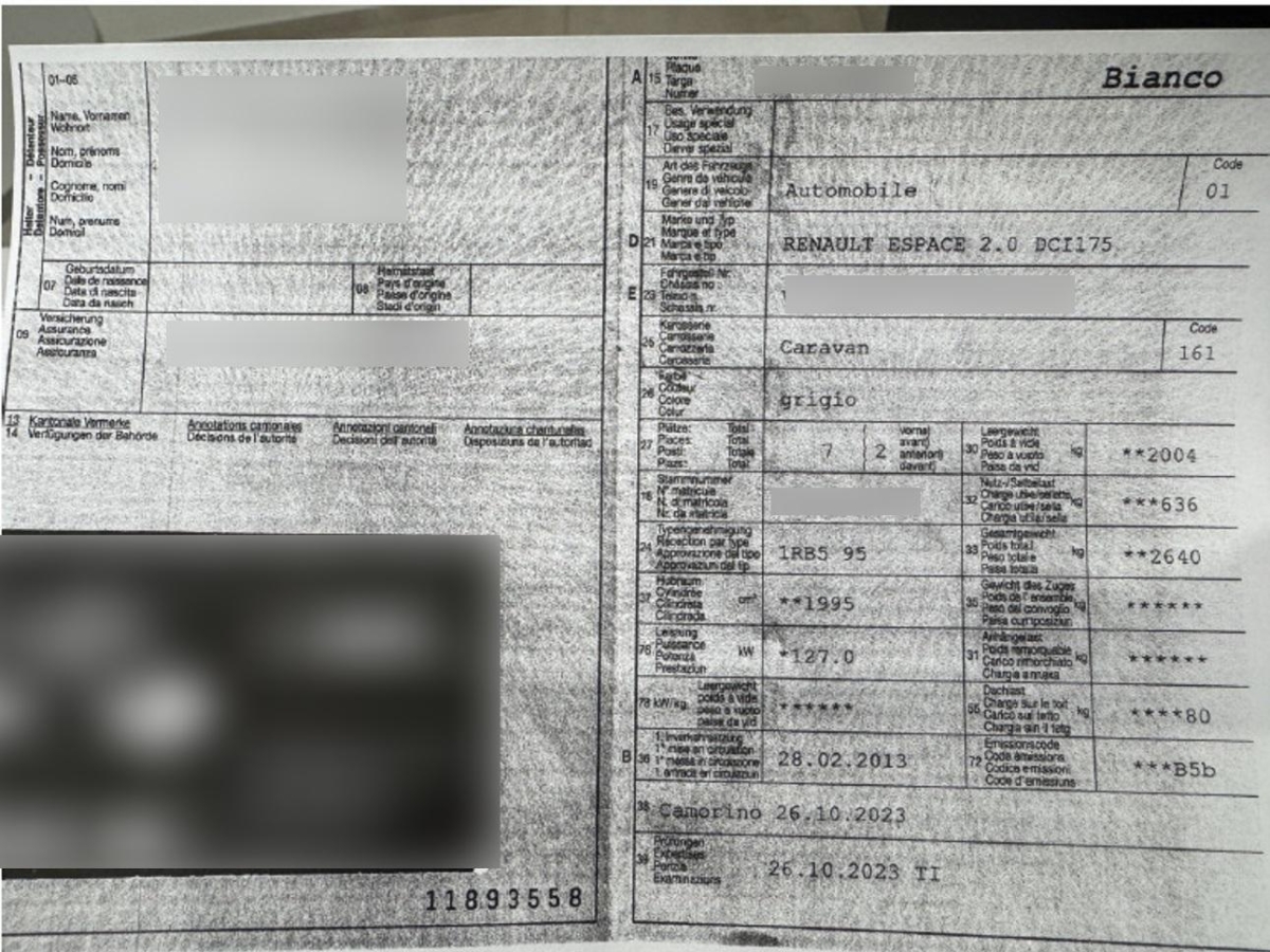Pollenfilter (Staubfilter), Lenkrad und Schalthebelgriff in Leder, Einstiegsschienen, Digital Uhr, 4 Leichtmetallfelgen 17J mit Pneu, Antriebsschlupfregelung (ASR), Licht: Drittes Bremslicht, Radiovorbereitung, Scheibenantenne, Ent- störung und 4 LS, 6 Sonnenstoren hinten, Staufach vorne in der Mittelkonsole, Sitze: Kopfstützen hinten höhenverstellbar, Lenkrad längs- und höhenverstellbar, Heckscheibenheizung, Dachgalerie mit Querträgern, Kopfstützen vorne höhenverstellbar, Leseleuchten hinten, Park Distance Control vorne und hinten, Make up-Spiegel rechts, Teppichfussmatten 1., 2. und 3.Sitzreihe, Räder: Reifenreparatur-Set (Tire Fit), Rücksitze längsverstellbar, 6-Stufen-Automat sequentiell, Klimatisierungsautomatik vorne + hinten, Cupholder hinten, Brillenablage, Airbag Beifahrer deaktivierbar, Seitenairbags, Automatische Parkbremse, Beide Make up-Spiegel beleuchtet, Make up-Spiegel links, Geruchsfilter, Getönte Scheiben, Lederausstattung Carbone Dunkel, Interieurfarbe Carbon Dunkel, Cupholder vorne, Kopfairbags hinten (Curtain Airbag), Servolenkung, Laderaumabdeckung rollbar, Aussenspiegel rechts und links beheizt, elektrisch verstell- / und einklappbar mit Memory-Funktion, Ablagefach, Bi-Xenon-Scheinwerfer inkl. Reinigungsanlage, Gurtstraffer vorne und hinten, Tempomat mit Geschwindigkeitsbegrenzer, Assist: Rückfahrkamera, Keyless Drive Hands-free, Vordersitze elektrisch verstellbar, Fahrersitz mit Memory-Funktion, Komfortkopfstützen vorne, Zentralverriegelung mit Fernbedienung, 1 Zusatzsitz in Leder, Licht: LED-Tagfahrlicht, Leseleuchten vorne, Wegfahrsperre elektronisch, Ablagen in den Türen, Vordersitze heizbar, Elektrische Kindersicherung, Handschuhfach, Partikelfilter und Oxydationskatalysator, 12-Volt-Steckdose vorne, Airbag: Airbag Fahrer und Beifahrer, Window-Kopfairbags, Tankdeckel-Entriegelung von innen, Heckscheiben-Wisch-/Waschanlage, Elektronisches Stabilitäts-Programm (ESP), Innenlicht-Abschaltverzögerung, Automatische Türverriegelung bei einer Geschwindigkeit von mehr als 5 km/h, Audio Connection Box, Lackierung: Metallic-Lackierung, Aussenspiegel elektrisch einklappbar, Licht: Nebelschlussleuchte, Armlehne im Fahrgastraum, Licht: Nebelscheinwerfer, Höhenverstellbare Gurten vorne, ABS, EBD elektronische Bremskraftverteilung, Bremsassistent (BAS), Warnblinkautomatik bei Vollbremsung, CARMINAT Tom Tom Farb Monitor, Bordcomputer, Aufklappbare Heckscheibe, Abblendlichtausschaltverzögerung 'Follow me home', Reflektierende Frontscheibe, Türgriffe aussen in mattchrom, Scheibenwischer vorne mit Intervall, Leuchtweitenregulierung automatisch, Elektrische Fensterheber vorne + hinten, Gurtkontrolle, Schutzleisten in Wagenfarbe, Innenrückspiegel automatisch abblendend, Seitenschweller Aluminium, Kartentaschen an den Rückenlehnen, Armlehne für Fahrer- und Beifahrersitz, Dunkel getönte Seitenscheiben hinten, Radiofernbedienung, Scheibenwischer vorne mit Regensensor und automatischem Einschalten der Abblendlichter