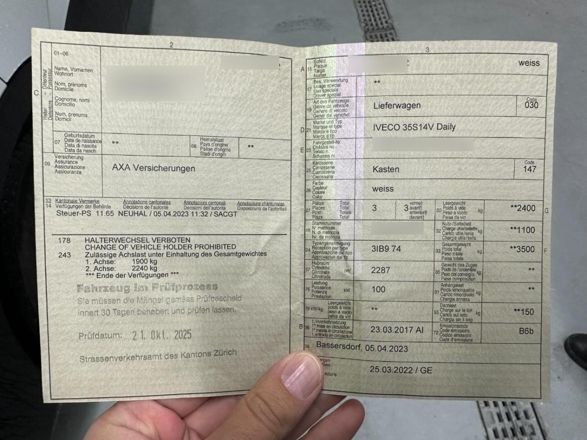Schiebetüre rechts, Fahrersitz manuell einstellbar, Elektronisches Stabilitäts-Programm (ESP), Anfahrassistent, Berganfahrhilfe (Hill Holder), Gurtstraffer Fahrer, Anhänger Stabilisierungkontrolle TSA, Innenraumbeleuchtung, Stabilisator hinten, Warnleuchte, Antiblockiersystem (ABS), 3-Punkt-Sicherheitsgurte auf allen Plätzen, Verbandskasten, Fahrersitz höhenverstellbar, Räder: Stahlräder 16J, Radiovorbereitung, Antenne, Entstörung und Lautsprecher, Laderaumtrennwand, Coming-home-Funktion, Getriebe: 6-Gang-Getriebe, Sonnenblende links, Blinker in Aussenspiegel, Stärkerer Alternator 150 A, Wagenheber, Airbag Fahrerseite, Komfortkopfstütze Fahrer, Höhenverstellbare Gurten vorne, Breitere Reifen 225, Wegfahrsperre elektronisch, Nebelschlussleuchte, Türen: Zentralverriegelung mit Fernbedienung, Punkt-Matrix-Display, Stoff-Ausstattung, Dachverkleidung, Reifenreparatur-Set (Tire Fit), Bremsassistent (BAS), Elektrische Fensterheber vorne, Scheibenwischer vorne mit Intervall, Tagfahrlicht, Leuchtweitenregulierung von innen, Warndreieck, Frontscheibe Verbundglas, Sonnenblende rechts, Bordcomputer, Uni-Lackierung, Assist: Proaktiver Fahrspurüberwachungs-Assistent, Wartungsintervall-Anzeige, Laderaumbeleuchtung, ABS, EBD elektronische Bremskraft- verteilung, Servolenkung, Digital Uhr, Überrollschutzsystem, Handschuhfach, Rückwandverkleidung, Antriebsschlupfregelung (ASR), Kotschutzlappen vorne und hinten, Ablagen in den Türen, Drehzahlmesser, Kraftstofftank 70 Liter, Halogenscheinwerfer, Elektrik für Anhängersteckdose, Verzurrösen, Getönte Scheiben, Korrosionsschutz für Unterboden, 4 Scheibenbremsen, Partikelfilter und Oxydationskatalysator, Getriebe: 6-Gang-Getriebe
