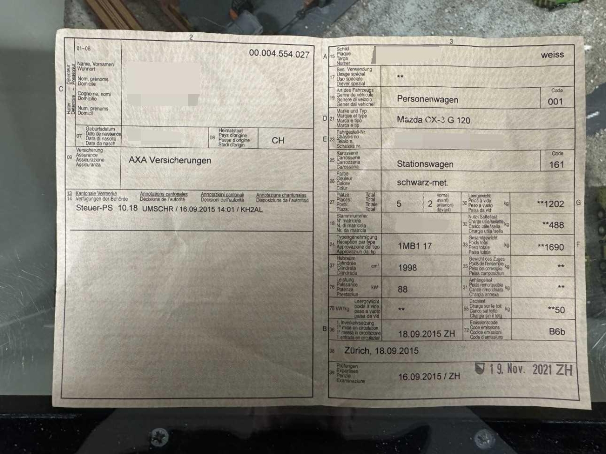 | Fahrzeugausweis | Vorhanden |