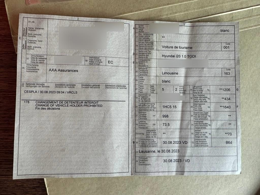 | Fahrzeugausweis | Vorhanden |