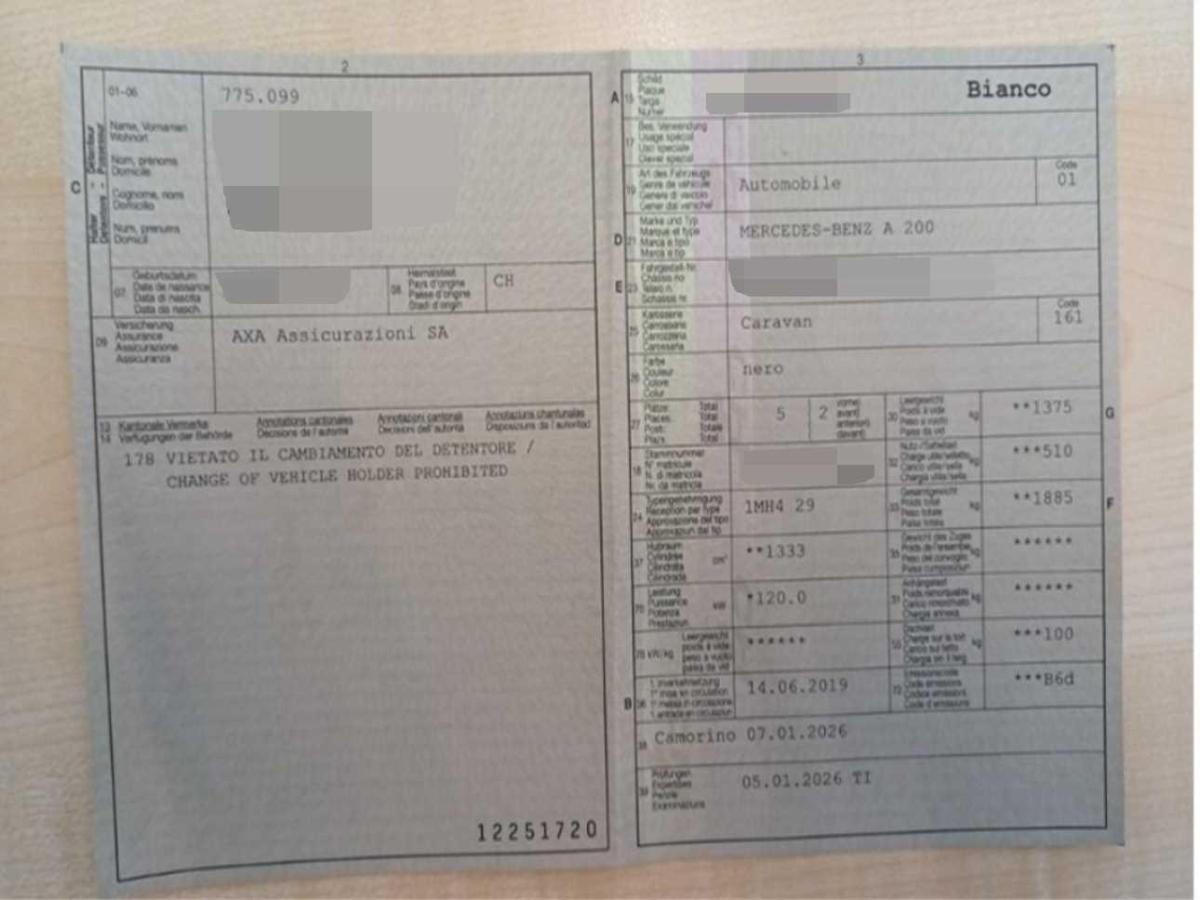 | Fahrzeugausweis | Vorhanden |