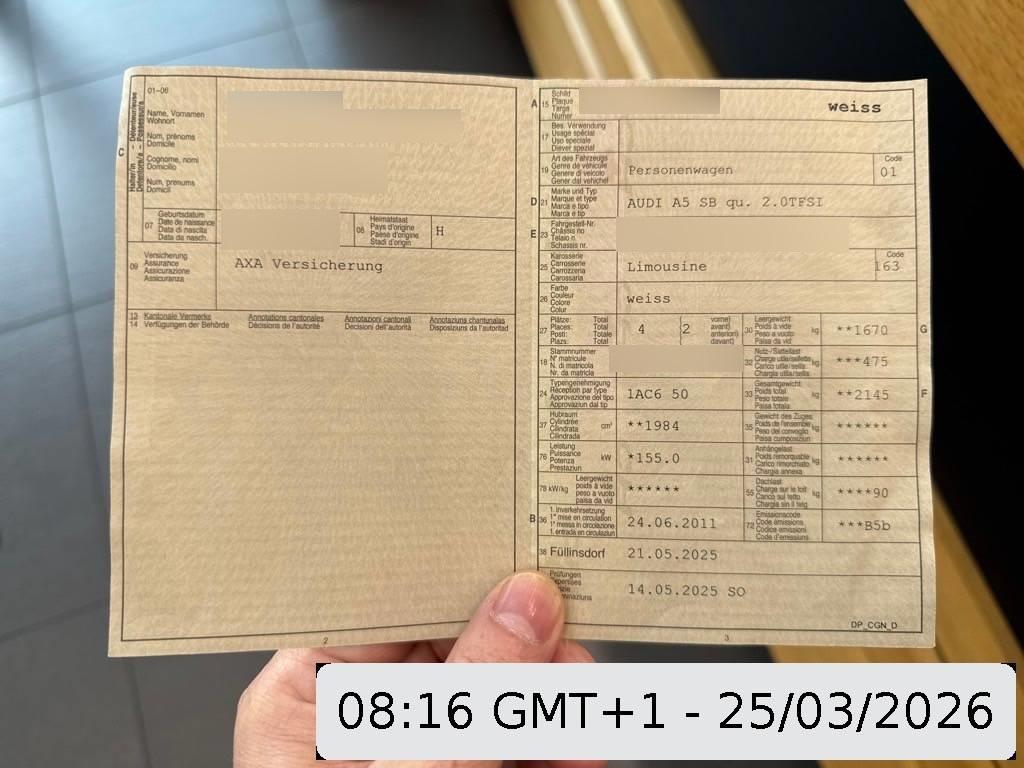 | Fahrzeugausweis | Vorhanden |
