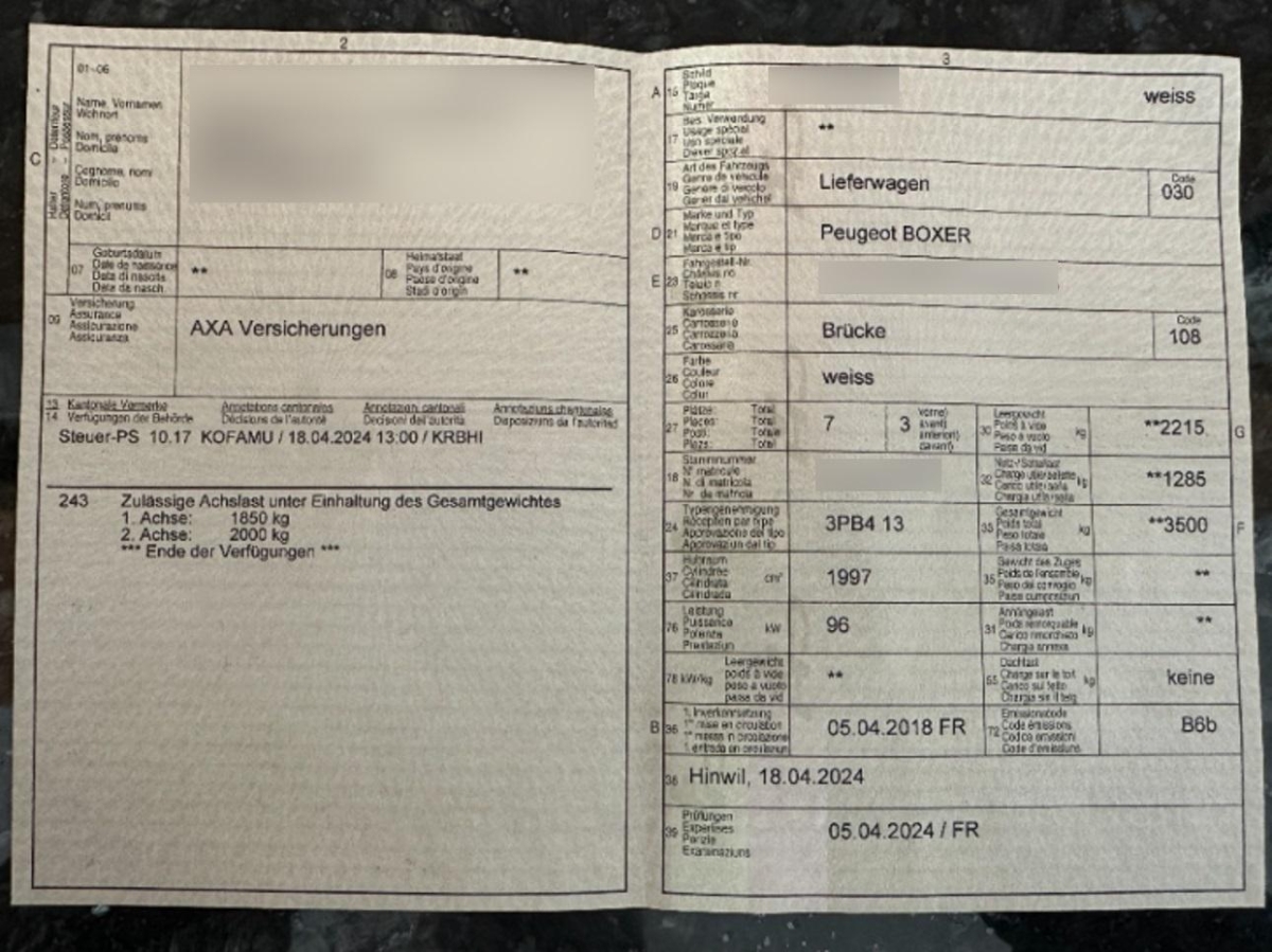 | Fahrzeugausweis | Vorhanden |