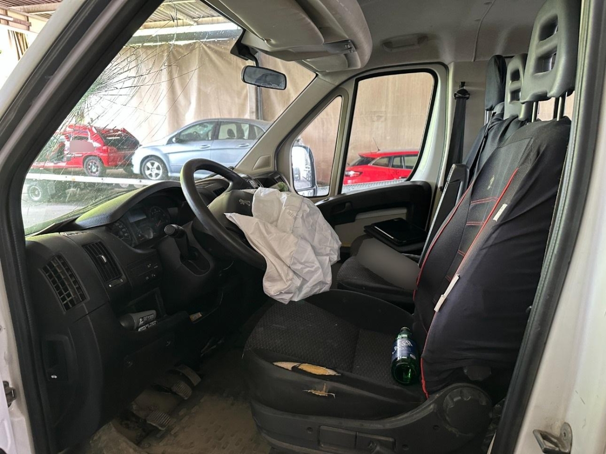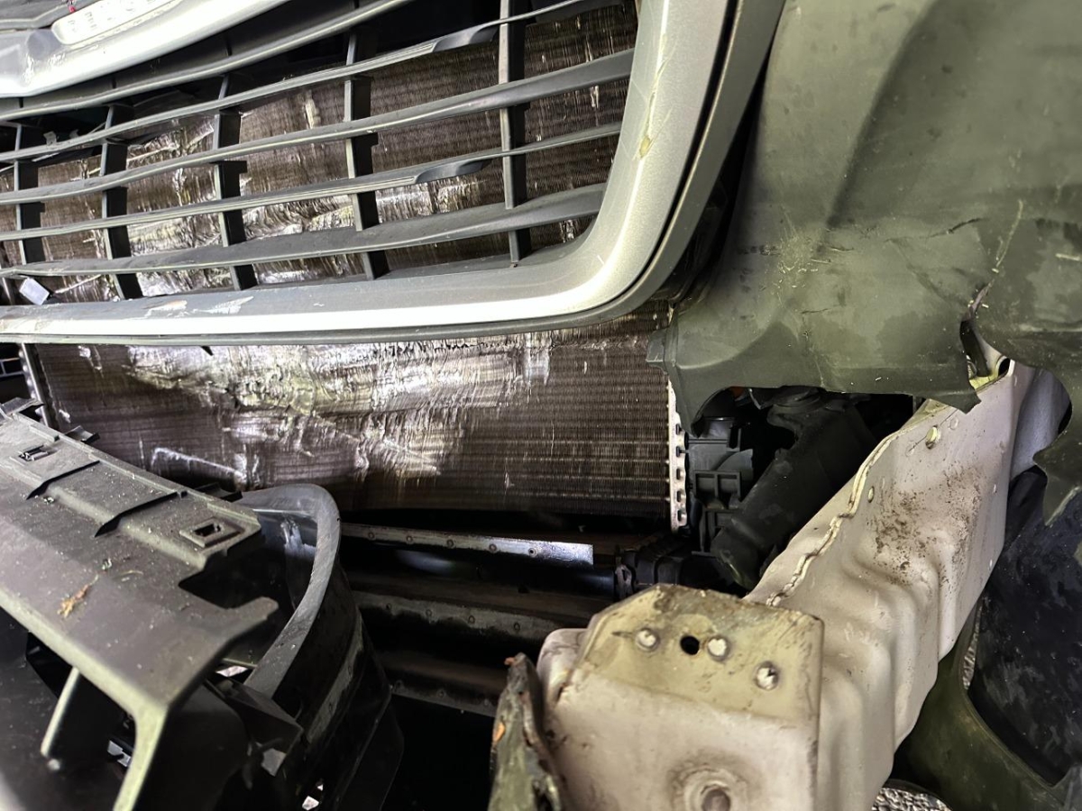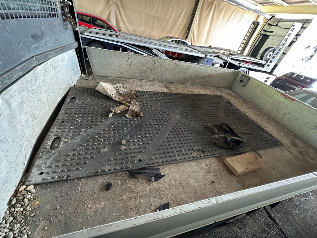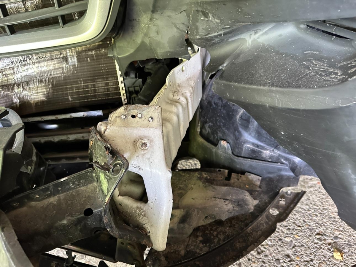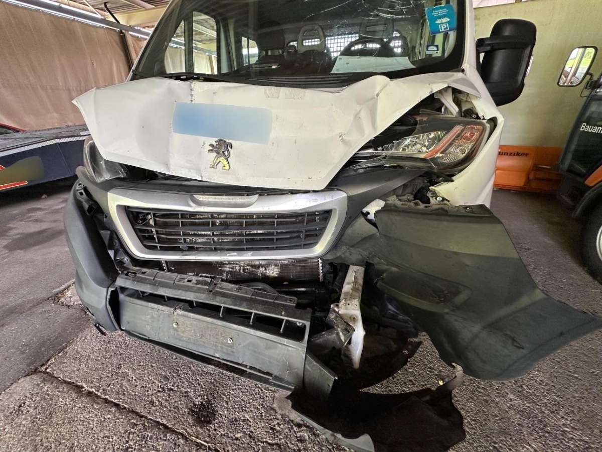 Pritsche und Kabine durch Ladung beim Aufprall beschädigt.
