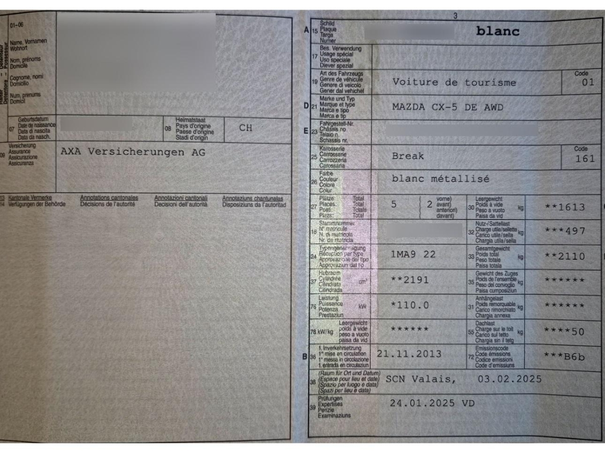 | Fahrzeugausweis | Vorhanden |