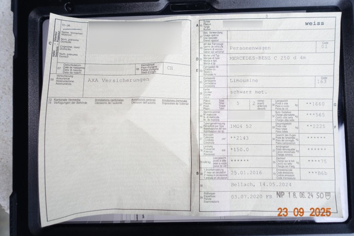 Innenlicht-Abschaltverzögerung, Fenstereinfassung in poliertem Aluminium, Gepäcknetz im Laderaum seitlich, Airbag: Window-Kopfairbags, Airbag: Airbag Fahrer und Beifahrer, Media: Audio 20 USB mit Farbdisplay, RDS- Doppeltuner, 2 USB-Anschlüsse, zentrales Bedienelement, Bluetooth-Schnittstelle, Beide Make up-Spiegel beleuchtet, Elektrische Fensterheber vorne und hinten mit Komfortbetätigung und Einklemmschutz, Dekor:Türmittelfelder in Ledernachbildung ARTICO, Aussentemperaturanzeige, Media:Heckscheibenantenne, Bottleholder, Assist: ATTENTION ASSIST (Aufmerksamkeitsassistent), Sitze: Armlehne vorne mit Ablagefach, Fahrwerk tiefergelegt, Klima: Klimatisierungsautomatik THERMATIC mit 2-Klimazonen, Wärmeschutzverglasung, Licht:Adaptives Bremslicht, Assist: Tempomat mit variabler Geschwindigkeitsbegrenzung SPEEDTRONIC, Kühlergrill in Iridiumsilber mit Chrom- einlage, Fahrwerk:AGILITY CONTROL-Fahrwerk mit selektivem Dämpfungssystem, Polster:Polsterung Stoff/Ledernachbildung ARTICO, Licht: Nebelschlussleuchte, Interieurleisten in Alu Längsschliff, Lackierung: Uni-Lackierung, Wartungsintervall-Anzeige, Allradantrieb permanent, Kartentaschen an den Rückenlehnen, Lenkrad: Lenkrad-Wippschaltung (Paddles), Reiserechner, 5 Lautsprecher, Drittes Bremslicht LED, Airbag: Knie-Airbag für Fahrer, Räder:Reifenreparatur-Set mit Kompressor, Lenkrad:Multifunktionslenkrad in Nappaleder, Wegfahrsperre elektronisch, Sitze: ISOFIX Kindersitzvorrichtung, Antiblockiersystem (ABS), Assist:COLLISION PREVENTION ASSIST (Kollisionswarnung), Fahrwerk:Direktlenkung mit geschwindigkeits- abhängiger Lenkkraftunterstützung, Brillenfach, Airbag: Seitenairbag für Fahrer und Beifahrer, Aussenspiegel rechts und links beheizbar und elektrisch verstellbar, ECO Start-Stopp-Funktion, Leichtmetallräder im 10-Speichen-Design 16J, Reifenreparatur-Set (Tire Fit), Licht: LED-Tagfahrlicht, Zentralverriegelung mit Fernbedienung und automatischer Türverriegelung, Dekor: Bordkantenzierstab in Aluminium poliert, Assist:ADAPTIVE BRAKE mit HOLD-Funktion und Berganfahrhilfe, Blinker in Aussenspiegel, Einstiegsschienen vorne mit Logo, Licht: Innenraumlicht-Paket, Assist:Reifendruck-Kontrollanzeige, Elektronisches Stabilitäts-Programm (ESP), Sitze:Sitzbelegungserkennung für Beifahrersitz, 7-Stufen-Automat sequentiell, Licht:Fahrlichtautomatik, Scheibenwischer vorne mit Intervall, Heckscheibe heizbar mit Zeitsteuerung, Sitze:Vordersitze mit elektrischer Höhen-, Lehnen-, und Neigungseinstellung, Steckdose 12-Volt- vorne, ESP Kurvendynamik-Assistent, Beleuchtetes und abschliessbares Handschuhfach, Licht: LED Heckleuchten, Media:Bluetooth-Schnittstelle für Telefonfreisprechfunktion, Kofferraumfernentriegelung, Partikelfilter und Oxydationskatalysator, DYNAMIC SELECT Schalter